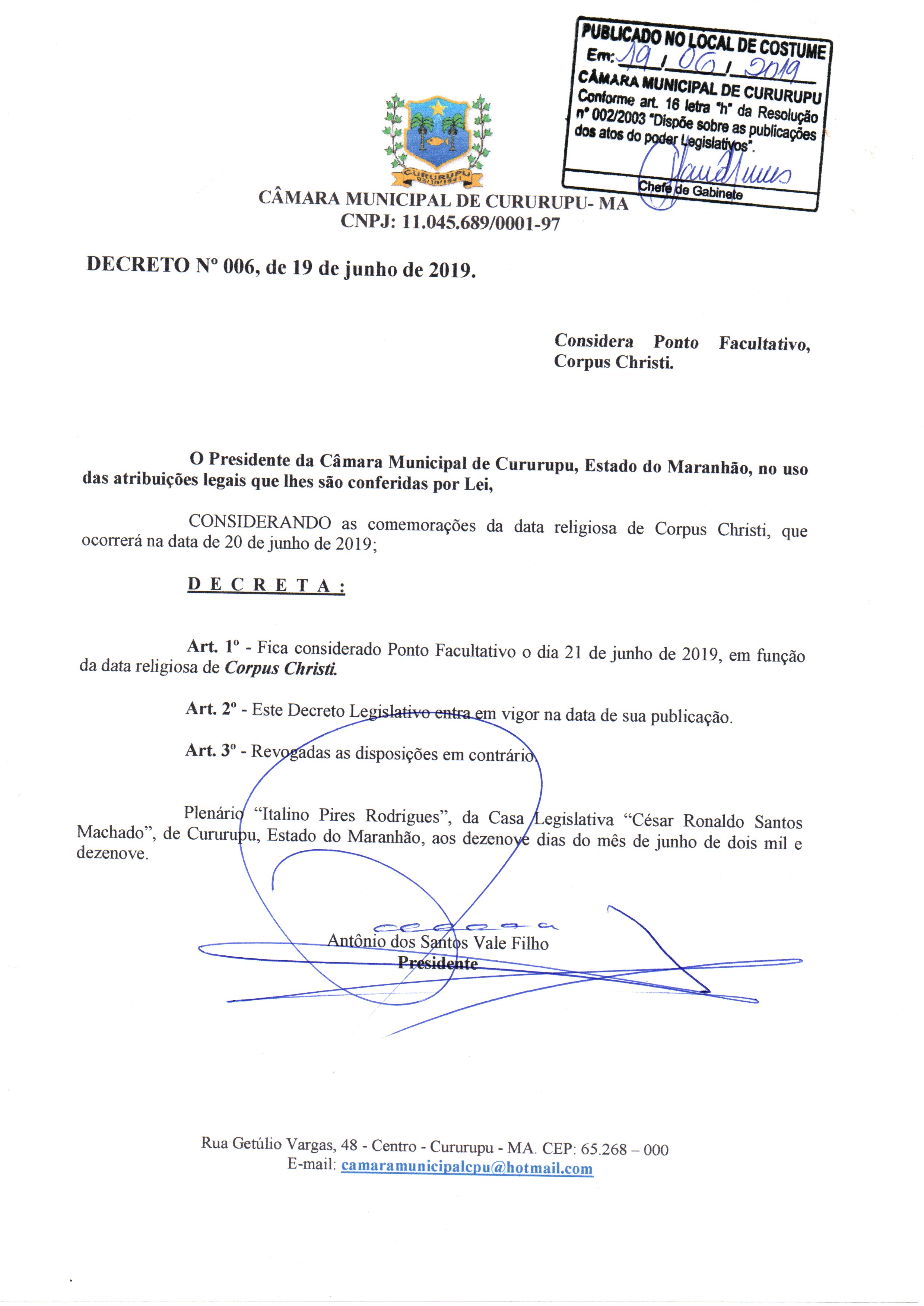 CÂMARA MUNICIPAL DE CURURUPU