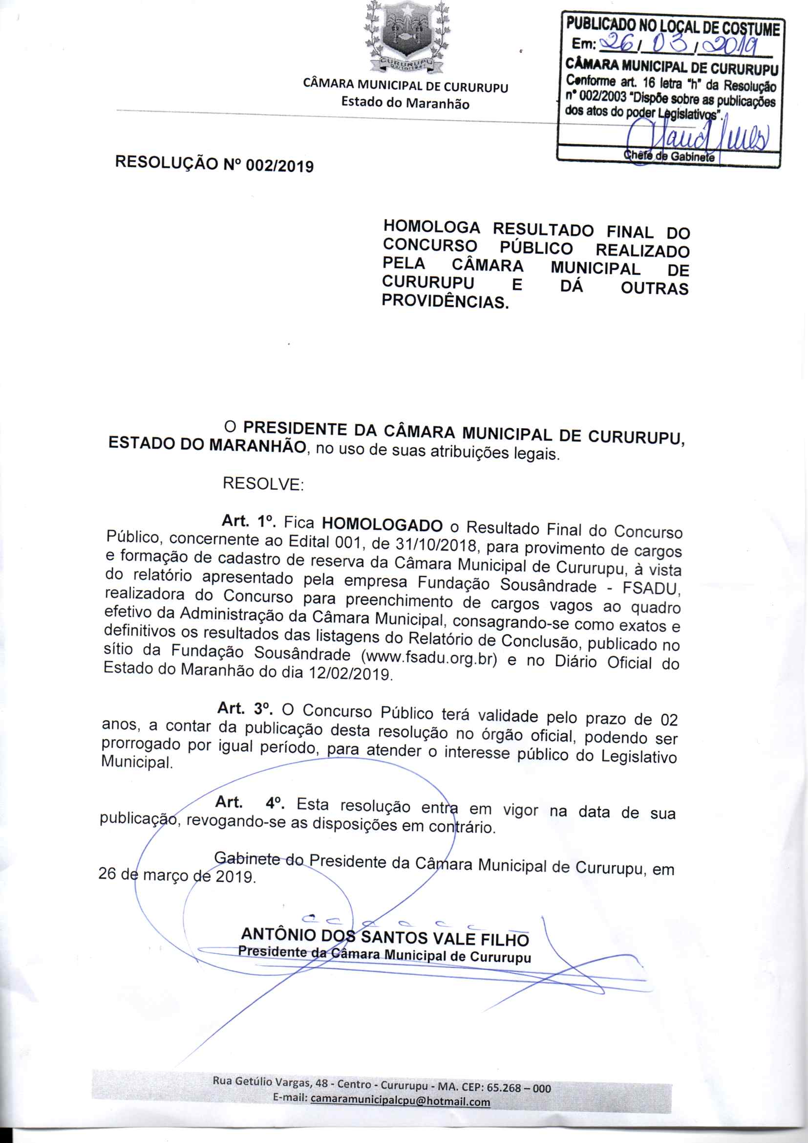 CÂMARA MUNICIPAL DE CURURUPU