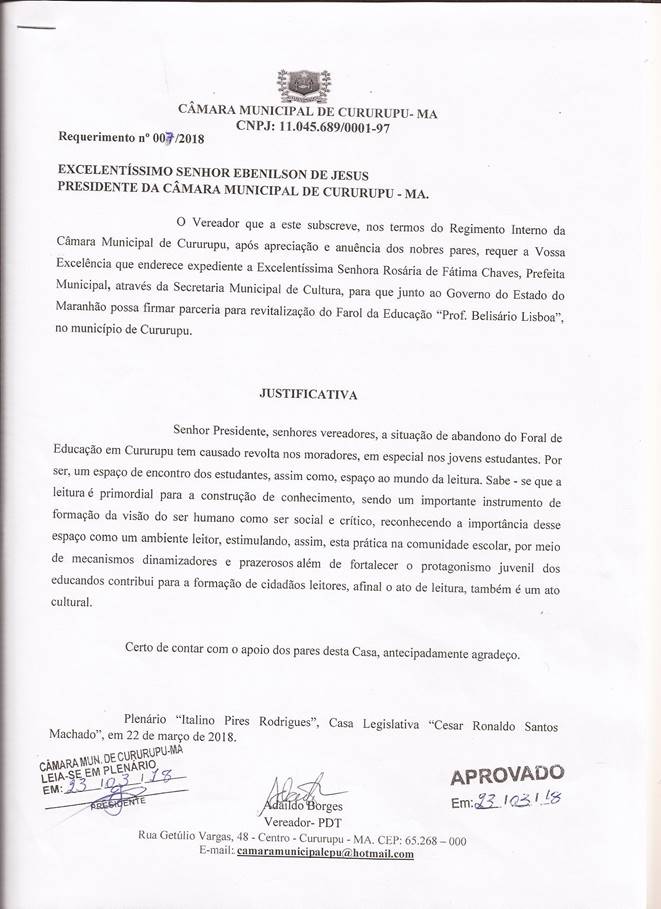 CÂMARA MUNICIPAL DE CURURUPU