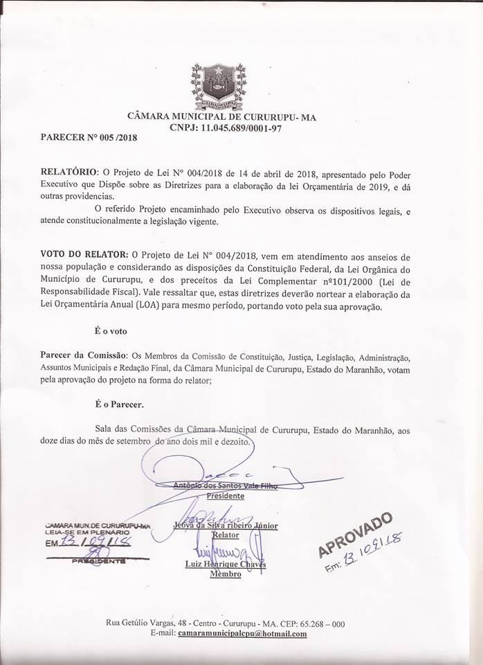 CÂMARA MUNICIPAL DE CURURUPU