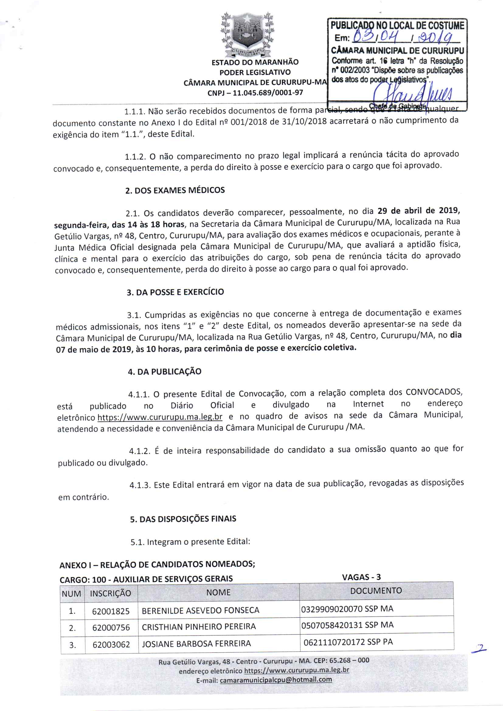 CÂMARA MUNICIPAL DE CURURUPU