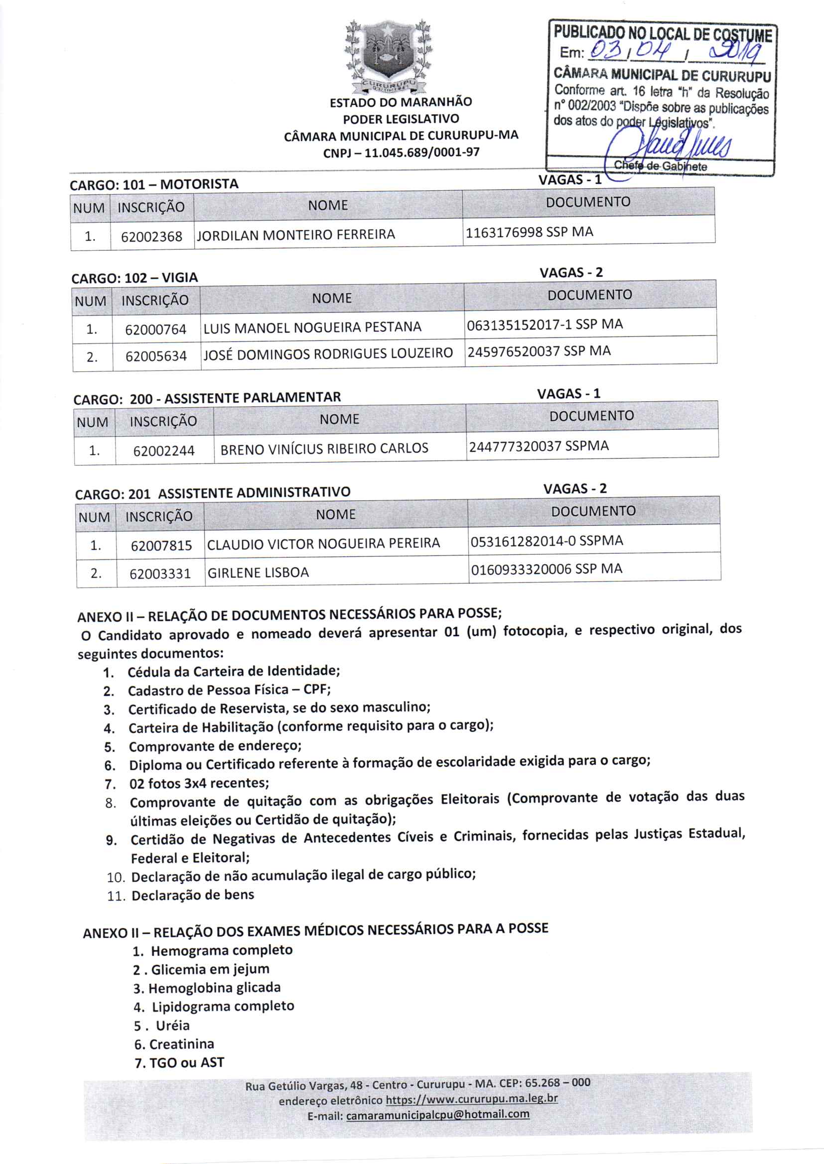 CÂMARA MUNICIPAL DE CURURUPU
