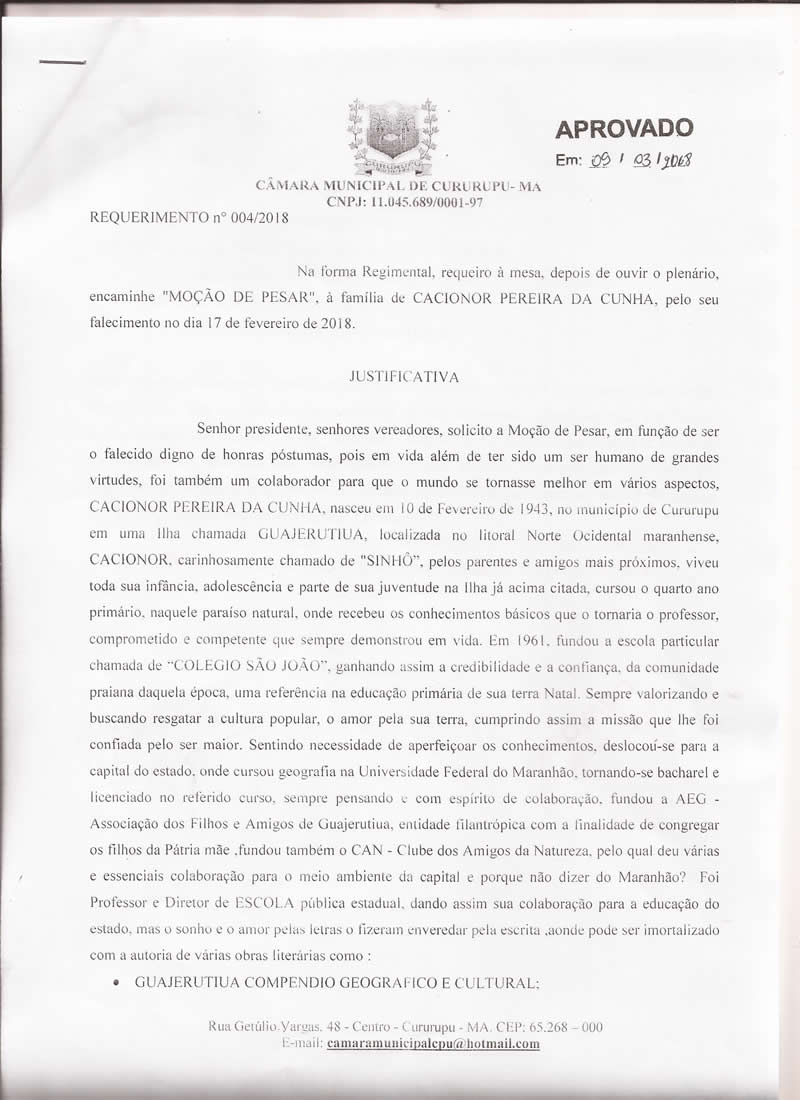 CÂMARA MUNICIPAL DE CURURUPU