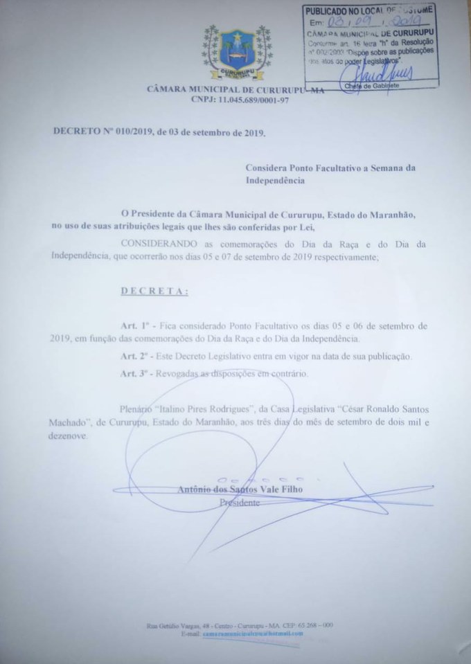 CÂMARA MUNICIPAL DE CURURUPU