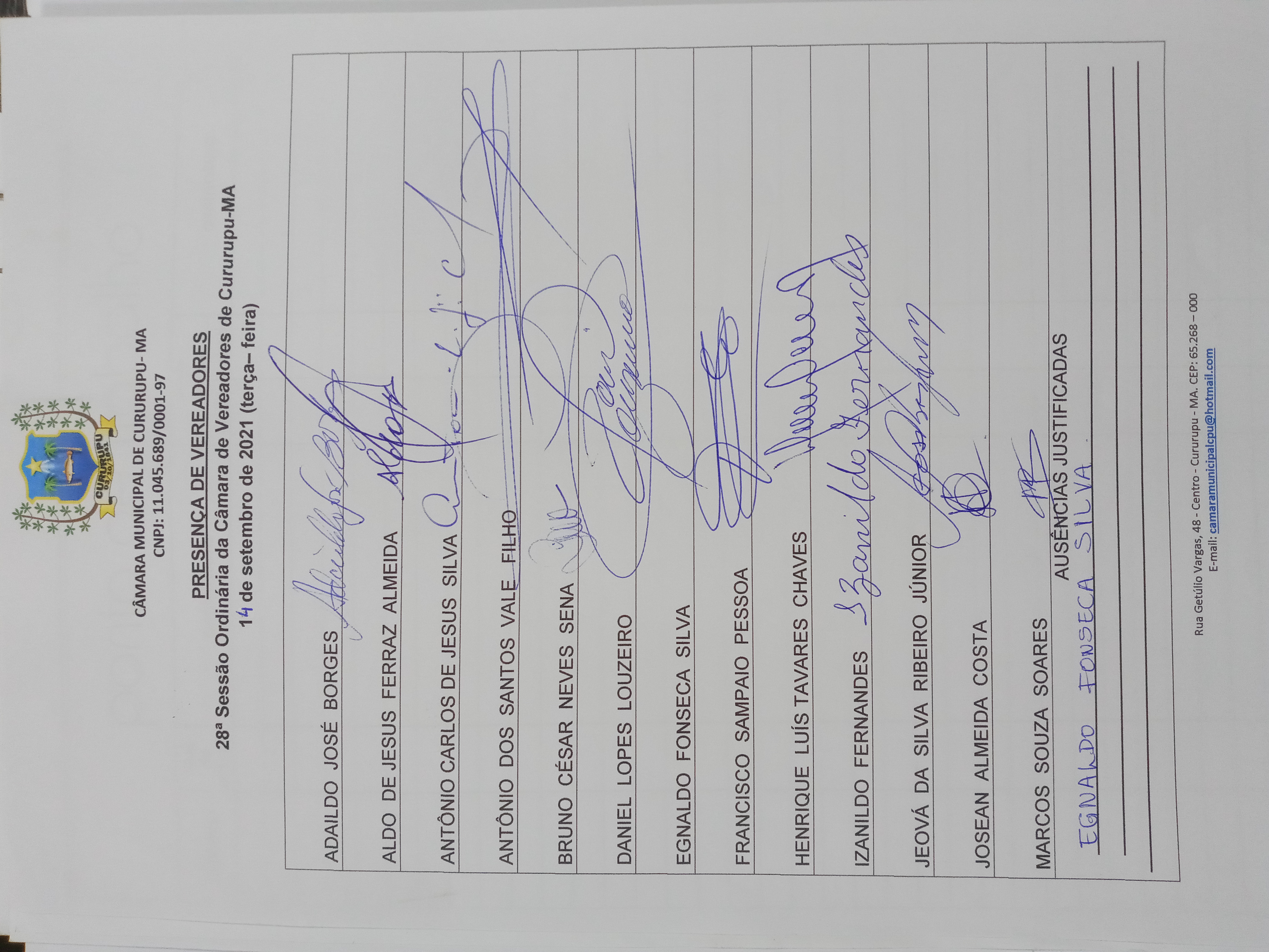 28ª SESSÃO ORDINÁRIA DIA 14 DE SETEMBRO DE 2021