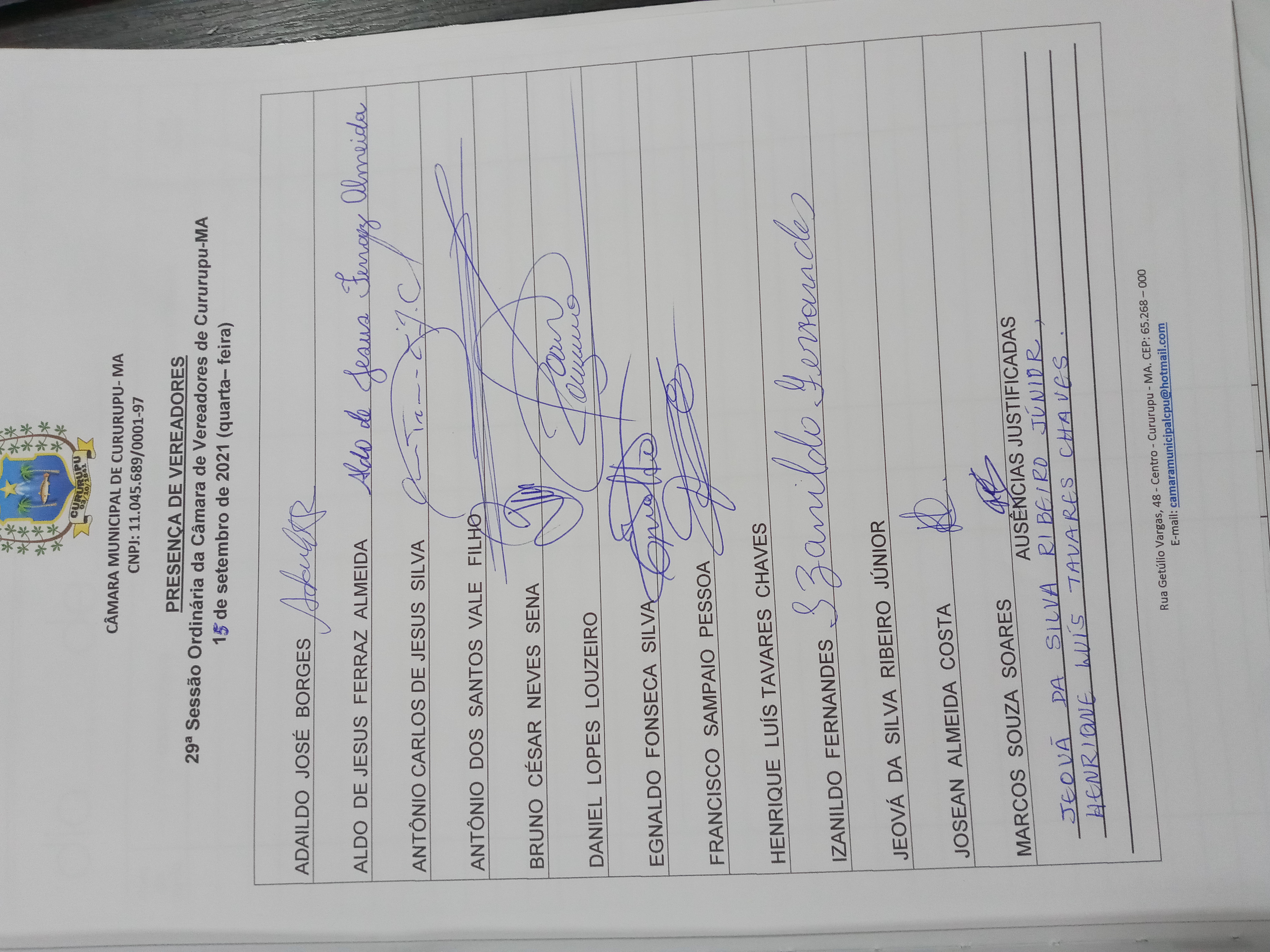 29ª SESSÃO ORDINÁRIA DIA 15 DE SETEMBRO DE 2021