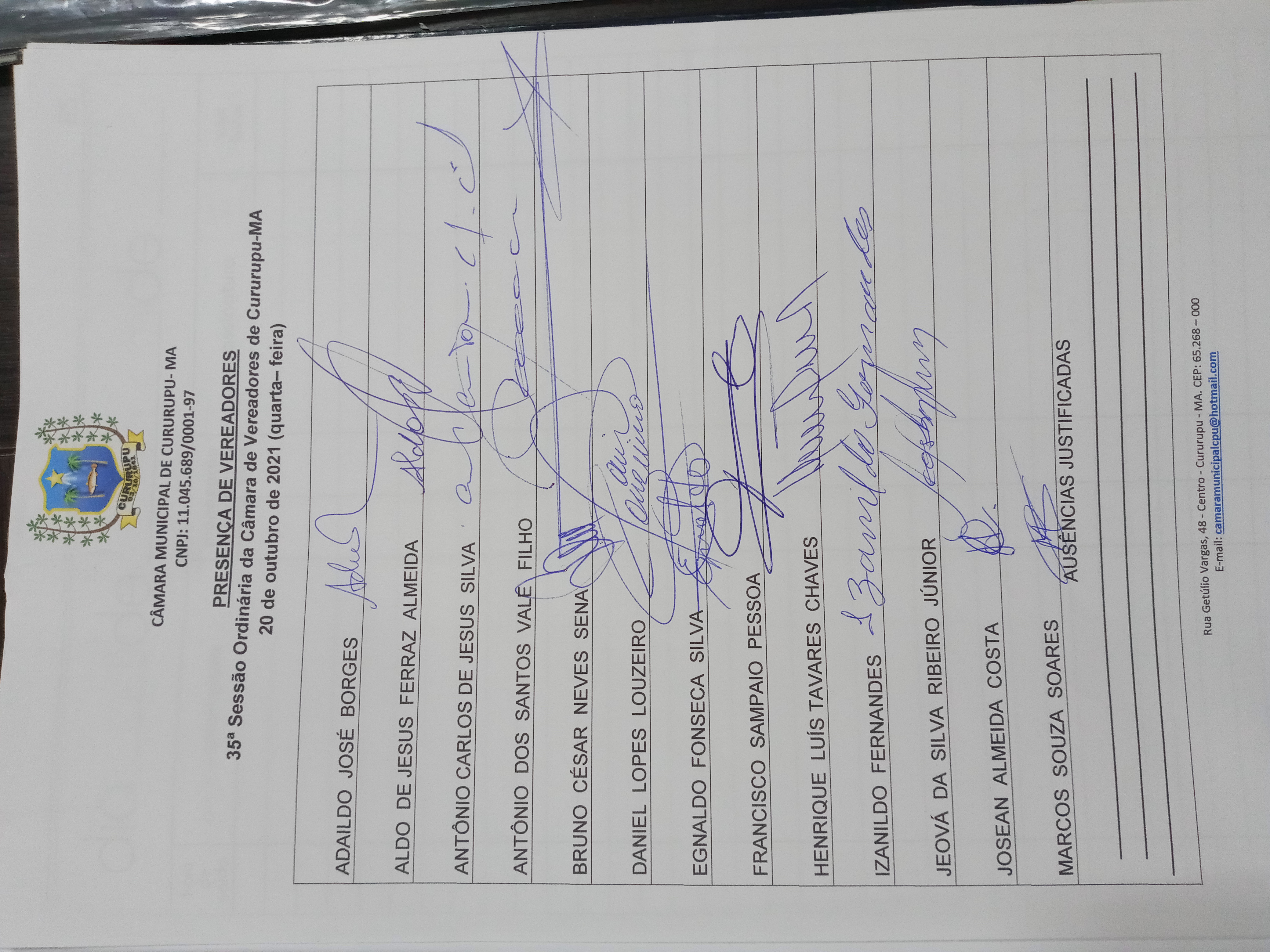 35ª SESSÃO ORDINÁRIA DIA 20 DE OUTUBRO DE 2021