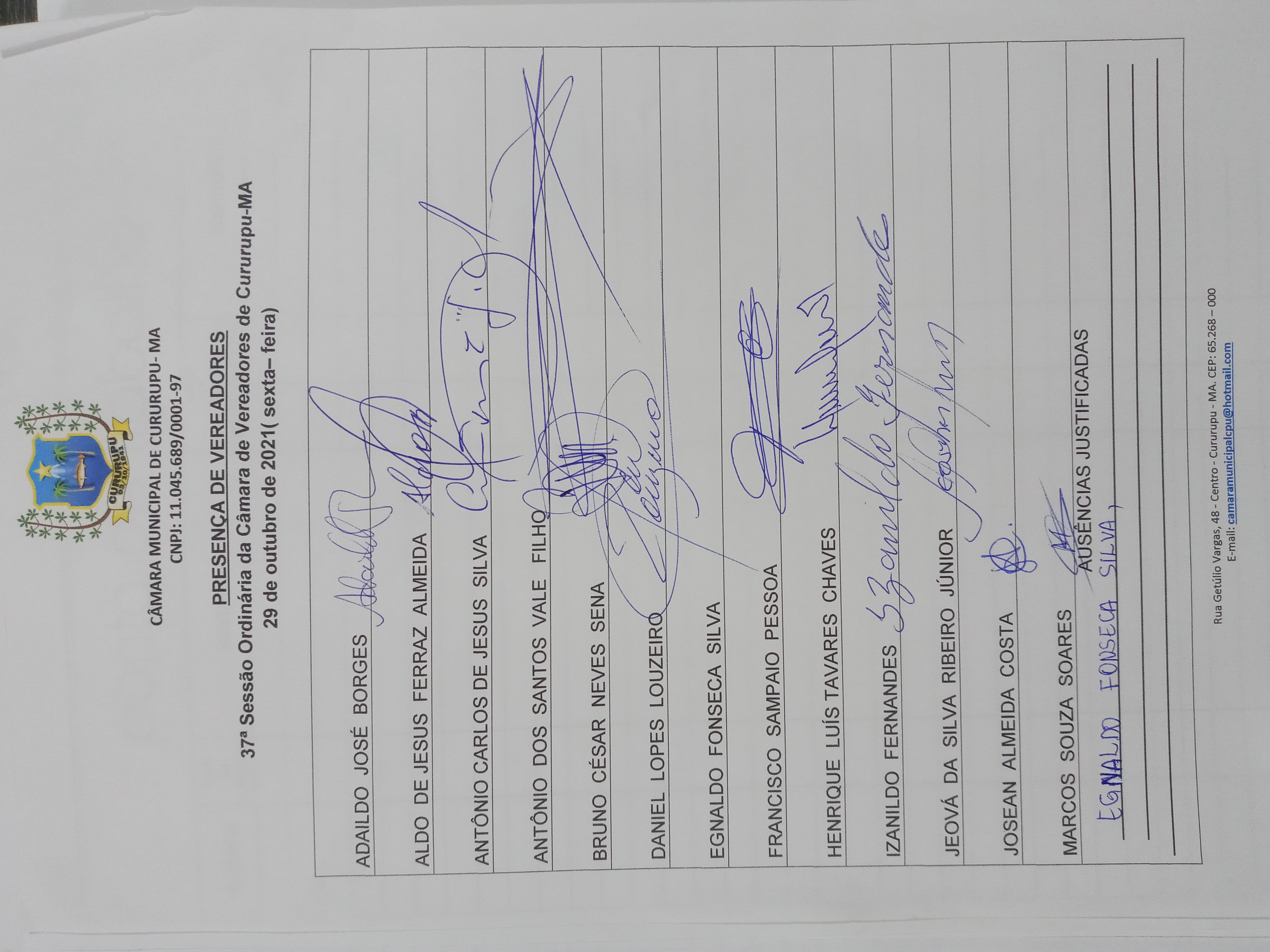 37ª SESSÃO ORDINÁRIA DIA 29 DE OUTUBRO DE 2021