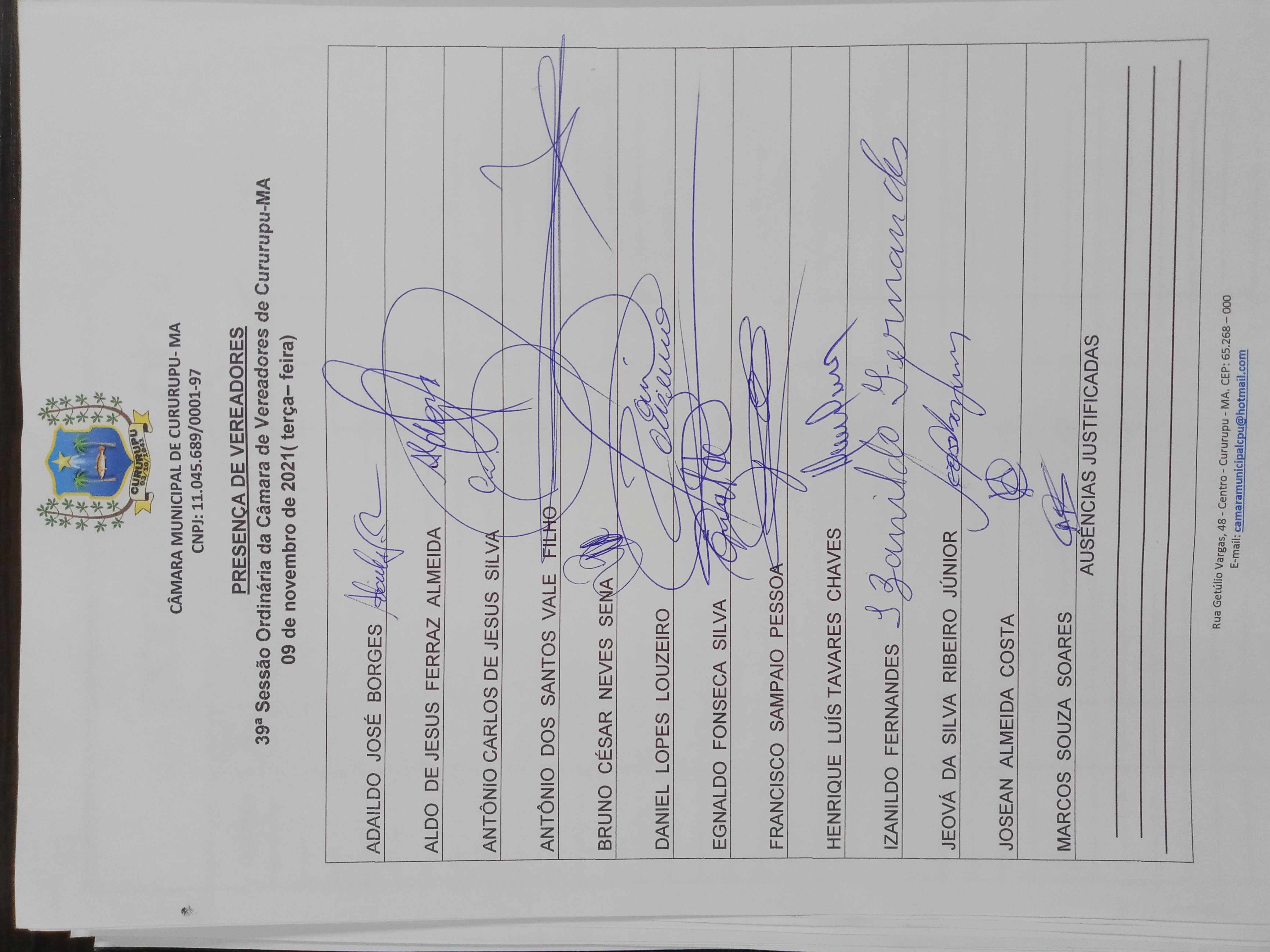 39ª SESSÃO ORDINÁRIA DIA 09 DE NOVEMBRO DE 2021